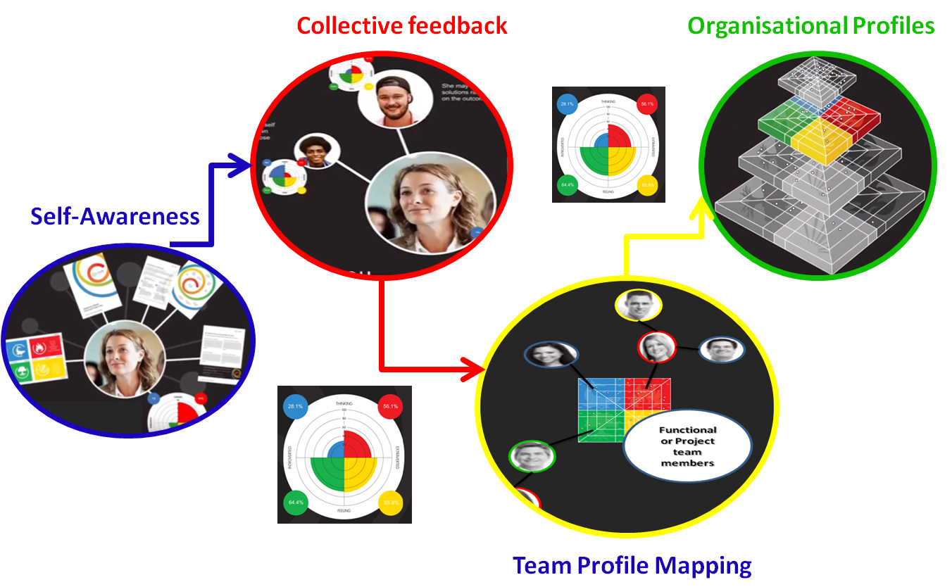 Organisations can aggregate their departmental and management profiles to develop an organisational profile map for their various organisational structures.  It has long been known that developing effective communication strategies within organisations can enhance motivation that in turn leads to greater productivity resulting in the generation of more ideas, being more creative and establishing a culture where people feel valued.